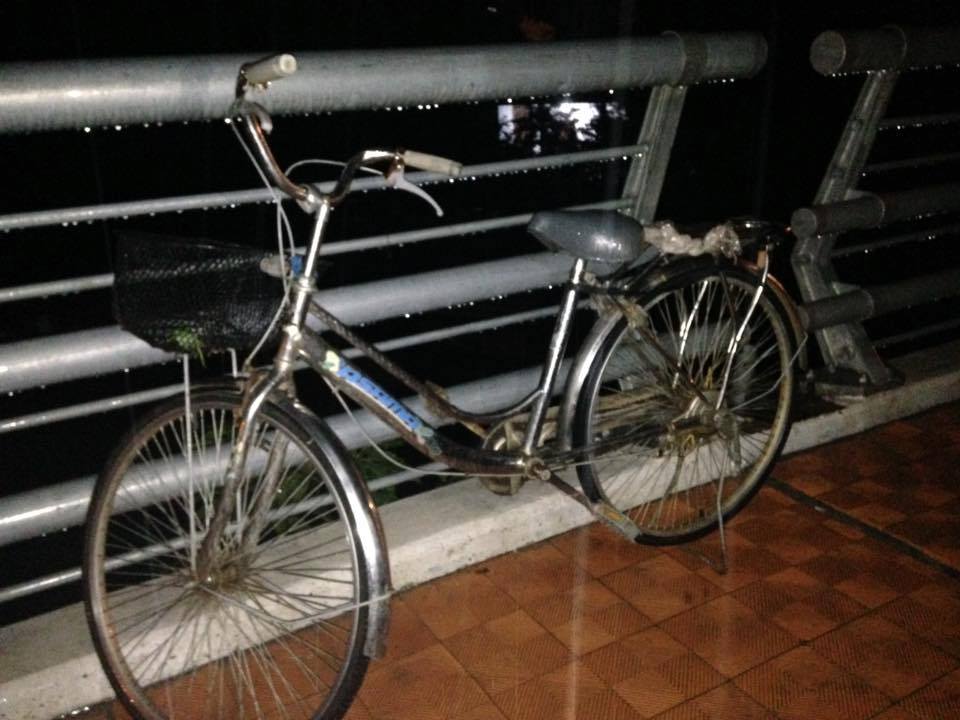 Chiếc xe đạp mà nạn nhân bỏ lại trên cầu trước khi nhảy sông tự tử.