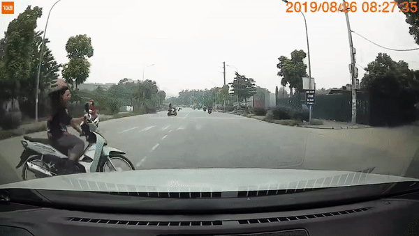Theo hình ảnh đoạn clip ghi lại, cô gái phóng xe qua đường ẩu nên tông trúng ô tô đang lao tới, hậu quả khiến cô gái văng lên ca pô ô tô rồi ngã dúi dụi xuống đường. Xe máy văng ra xa, còn cô gái văng vào lề đường rất đau đớn.