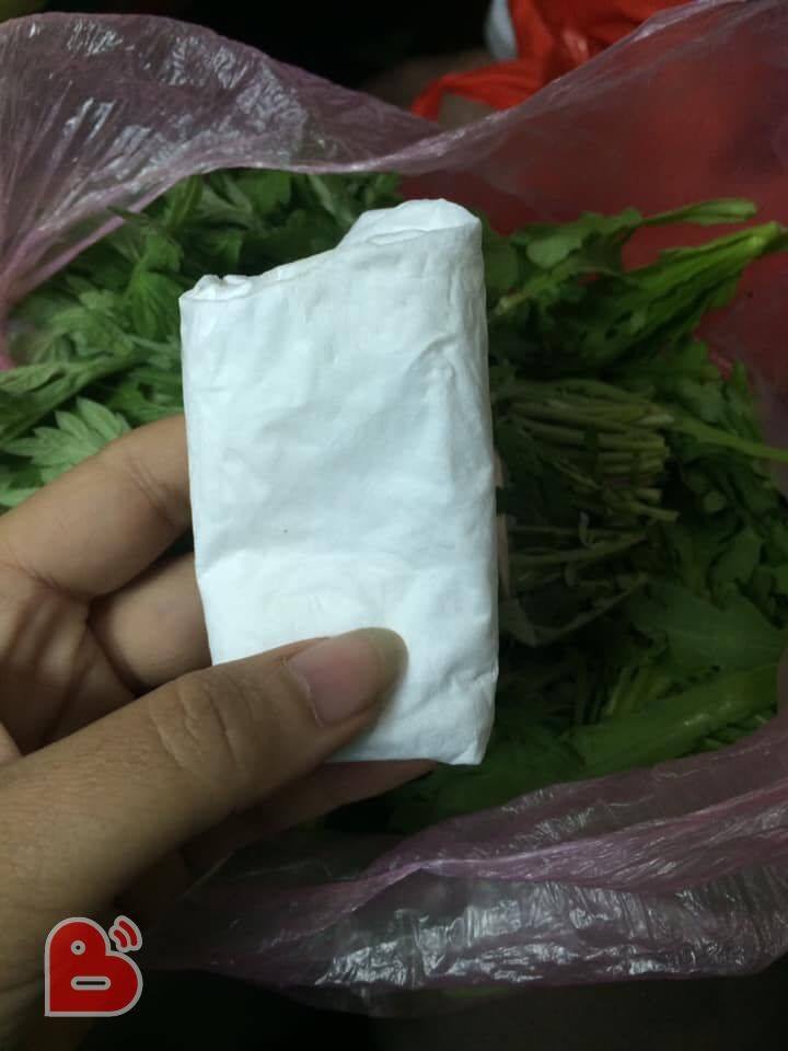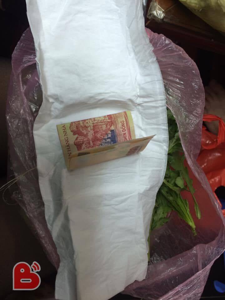 Số tiền được bọc trong giấy cẩn thận rồi nhét trong túi rau. Ảnh: Beatvn