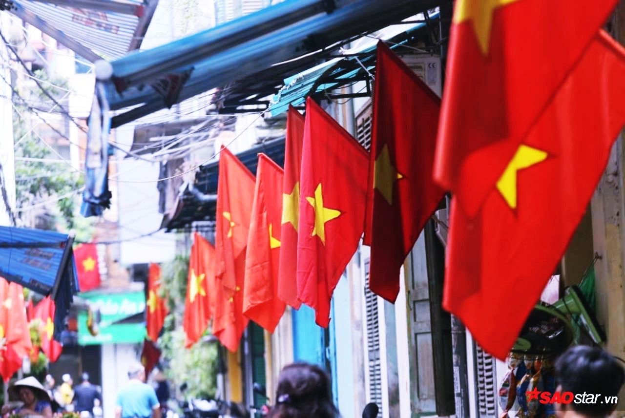 Cờ đỏ sao vàng bao trùm nhiều tuyến phố để mọi người dân tưởng nhớ đến Bác, đến những năm tháng đầy tự hào của dân tộc.