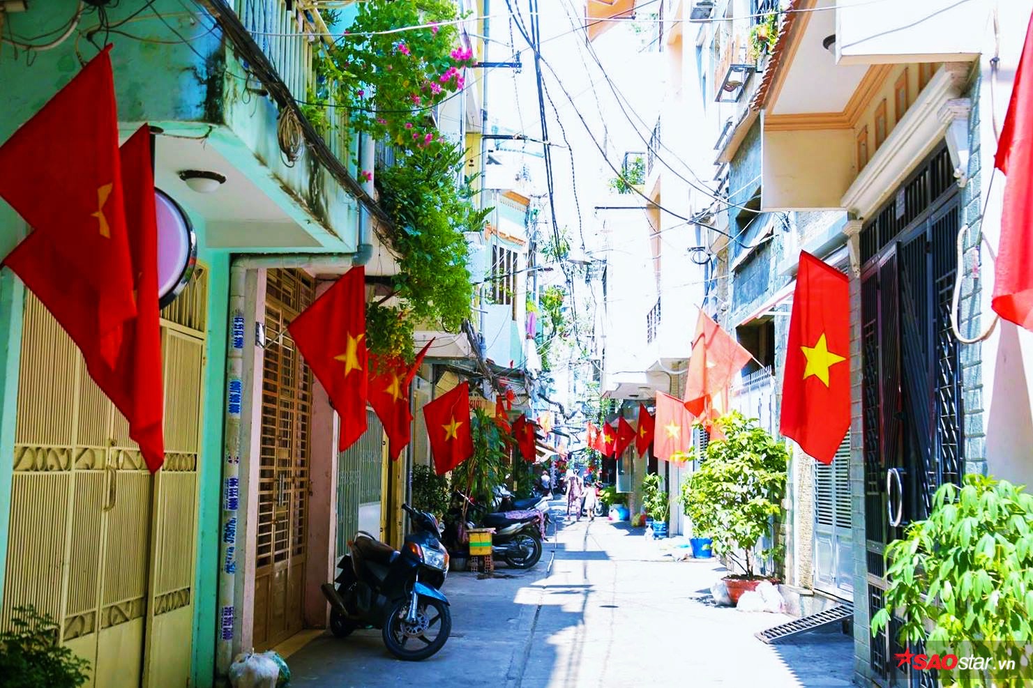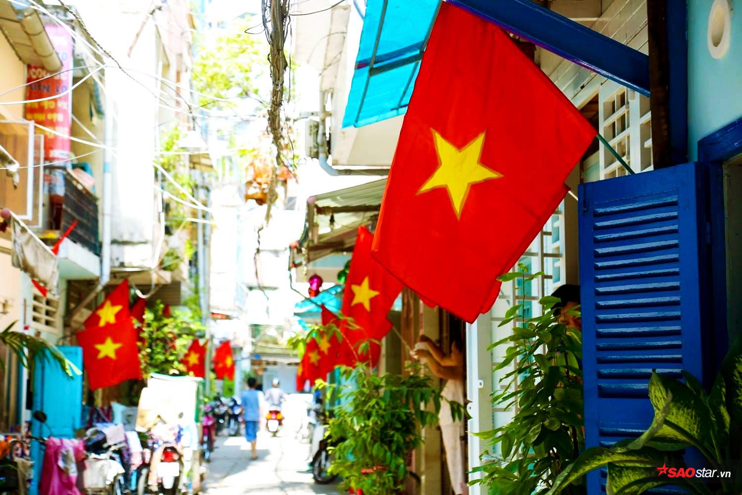 Màu cờ đỏ phủ rợp cả những con hẻm nhỏ xíu của Sài Gòn.