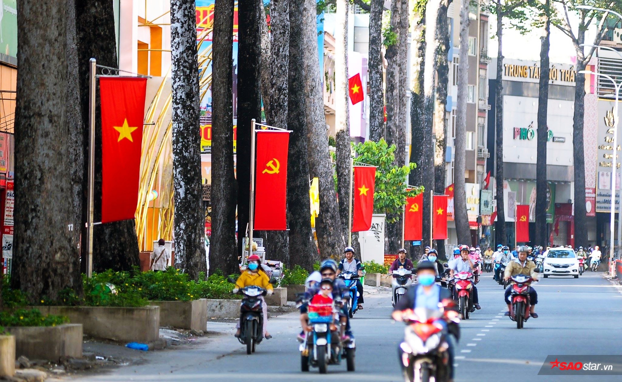 Trên tuyến đường quan trọng của thành phố như Nam Kỳ Khởi Nghĩa, Trần Quang Khải,… cũng phủ rợp cờ hoa.