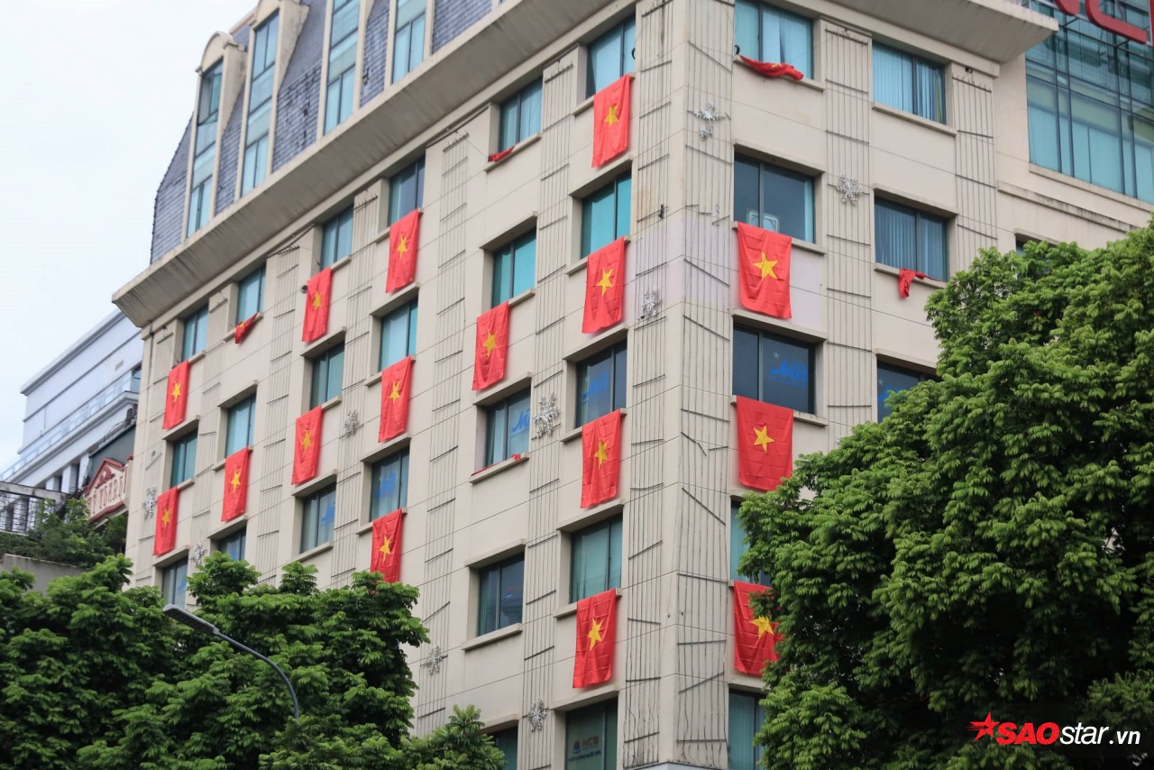 Một tòa nhà trên phố Bà Triệu treo hơn 50 cờ Tổ quốc.
