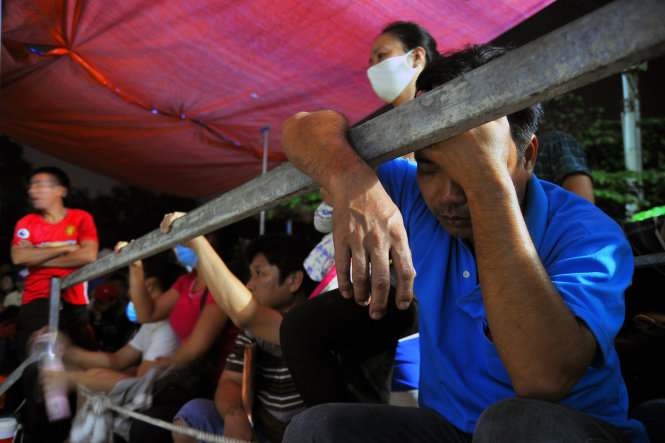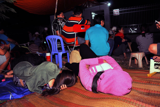 Nhiều phụ huynh ngồi, nằm, chống tay vào thanh sắt vật vã ngủ giữa đêm. Số khác mỏi quá đã tranh thủ đi ra khỏi hàng một lúc cho đỡ mỏi lại mau chóng trở lại hàng vì sợ mất chỗ.
