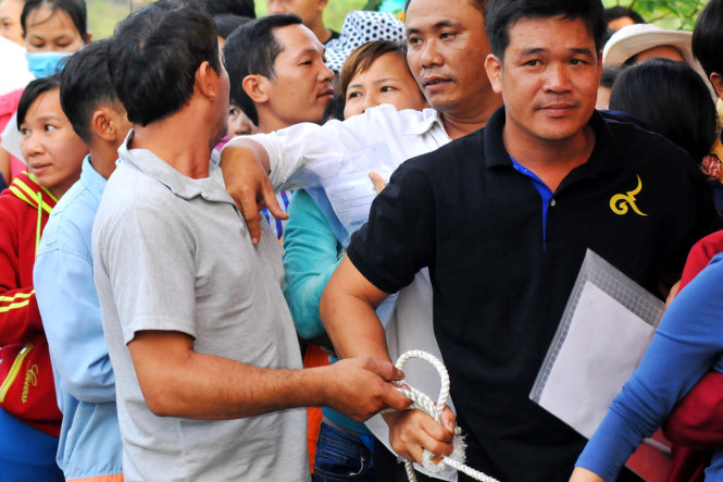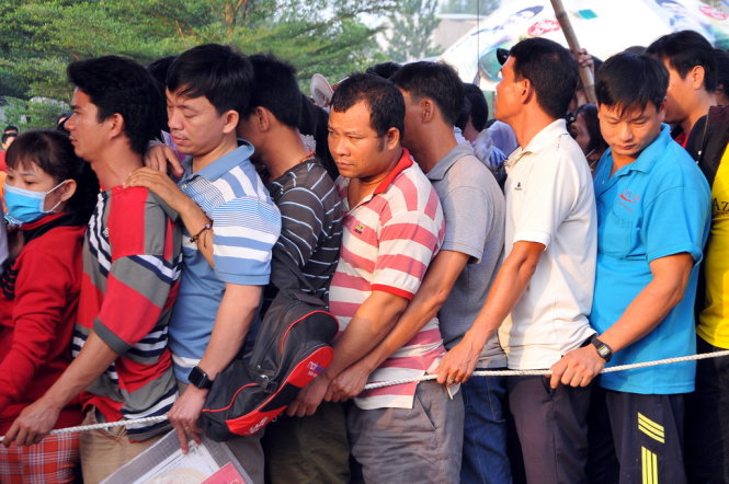 Các phụ huynh nắm chặt sợi dây vì sợ có người chen ngang.