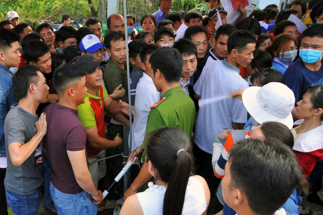 Lực lượng công an phải can thiệp, tách một phụ huynh ra khỏi hàng vì chen ngang.