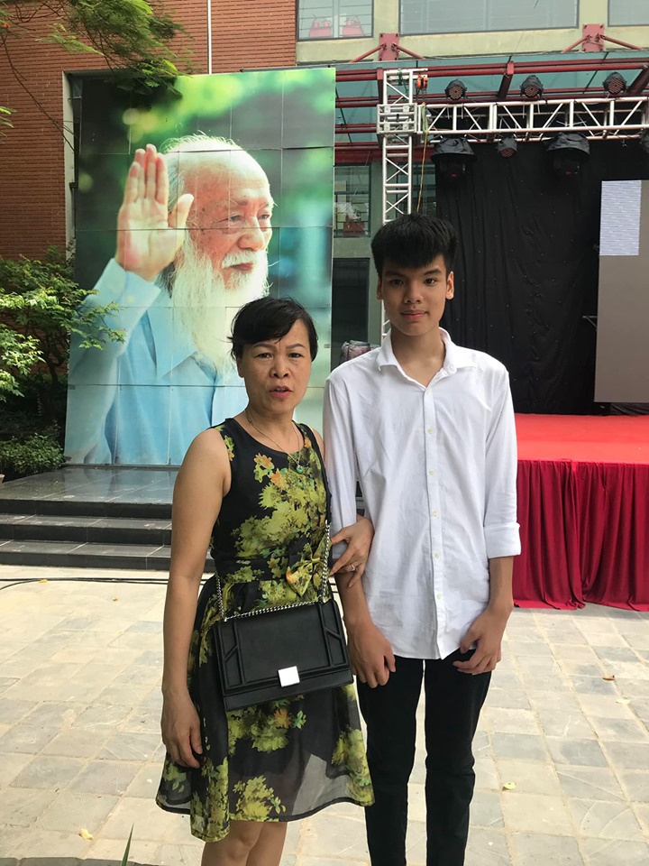 Đức Anh cùng người bác chụp ảnh tại trường Lương Thế Vinh.
