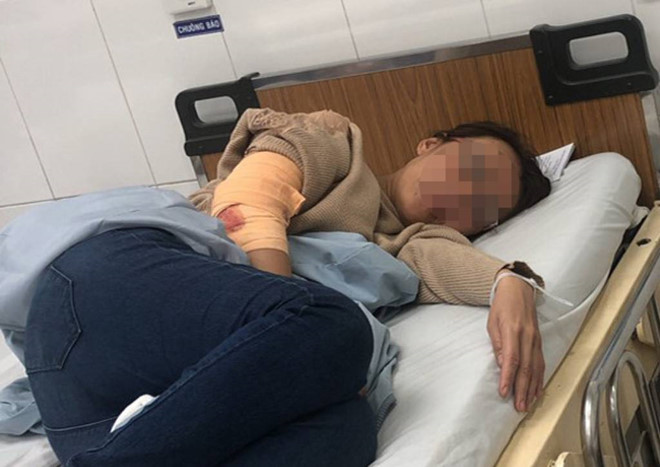 Chị Hương bị côn đồ đòi nợ thuê chém trọng thương, đang điều trị tại bệnh viện. Ảnh: báo Thanh Niên