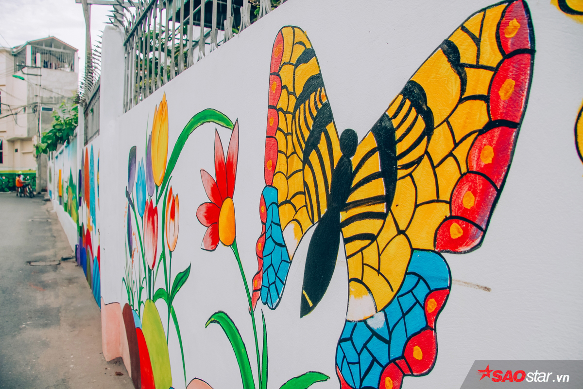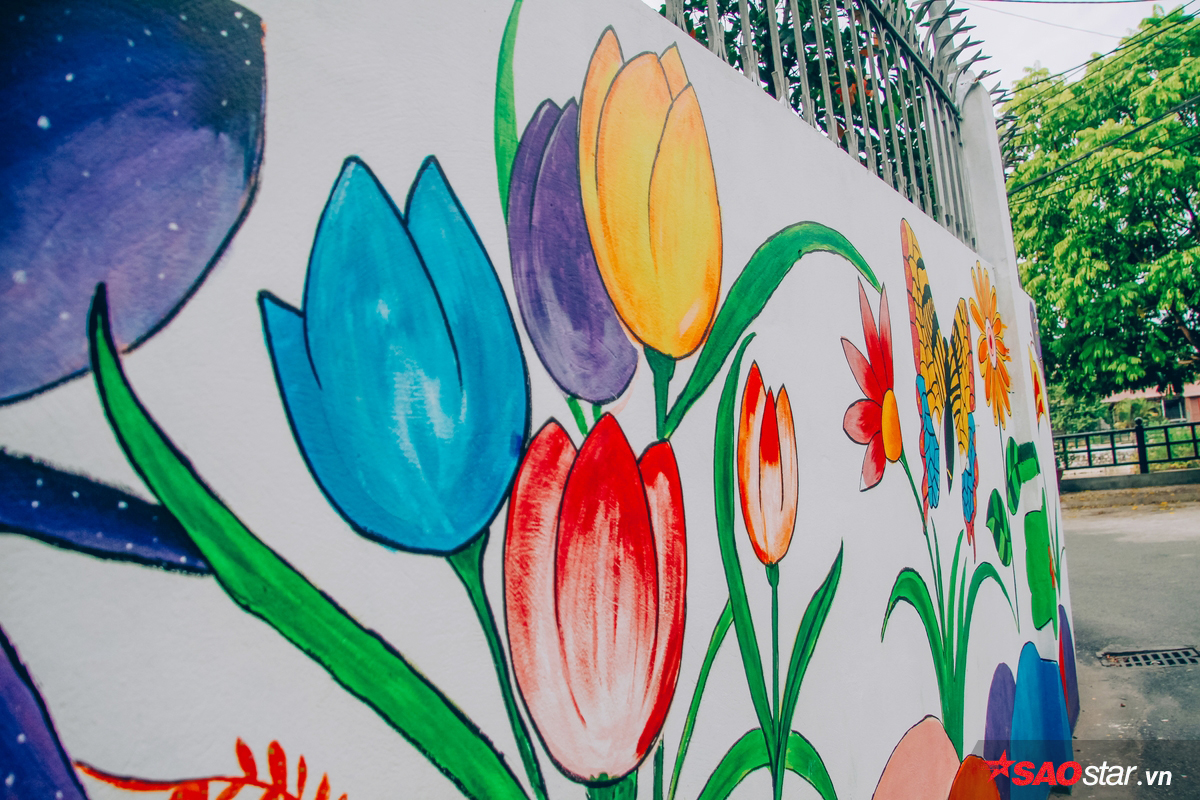 200m đường Hủng được trang trí không trống một bức tường nhà nào. Màu sắc rực rỡ làm nơi đây gây chú ý cho những người qua lại
