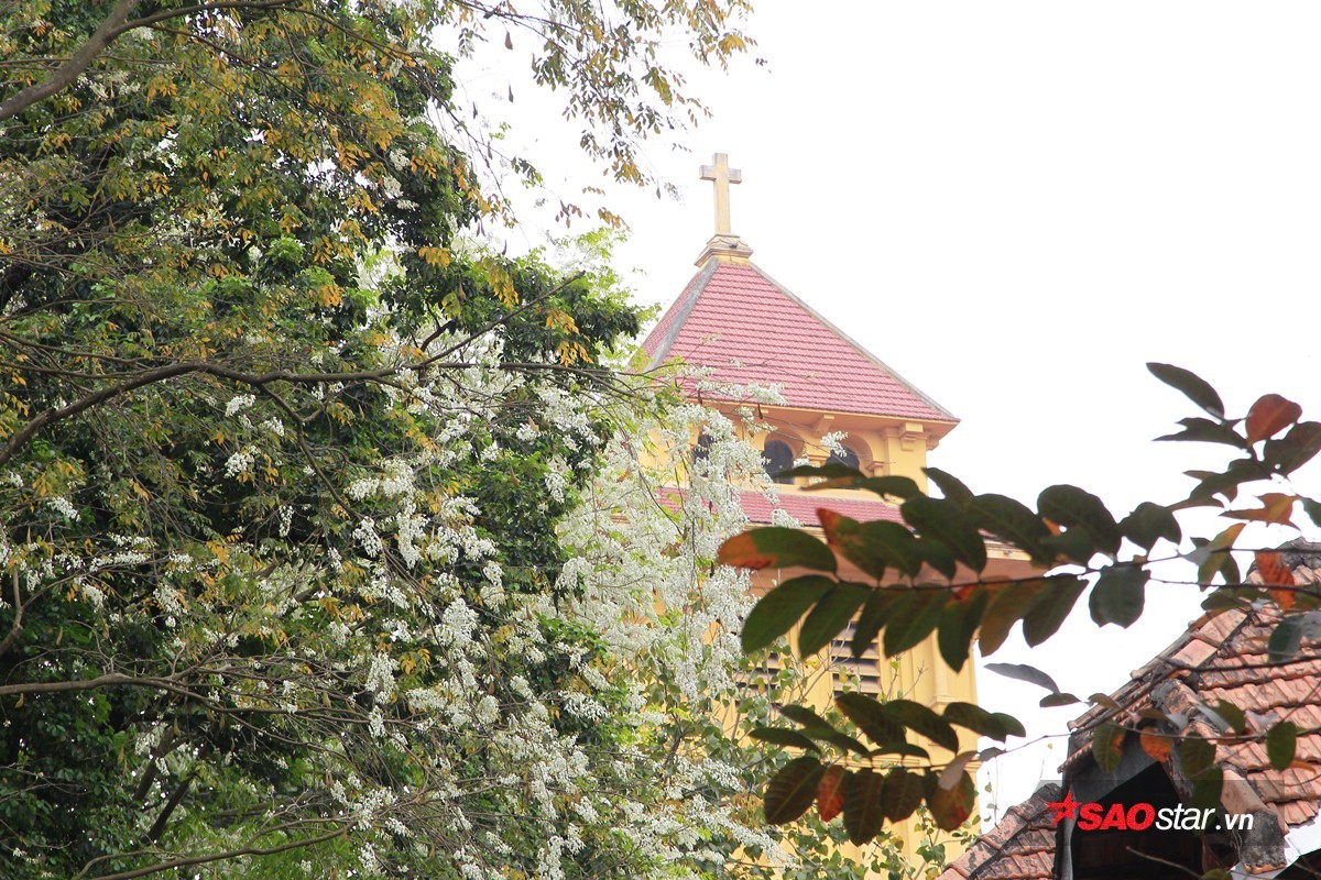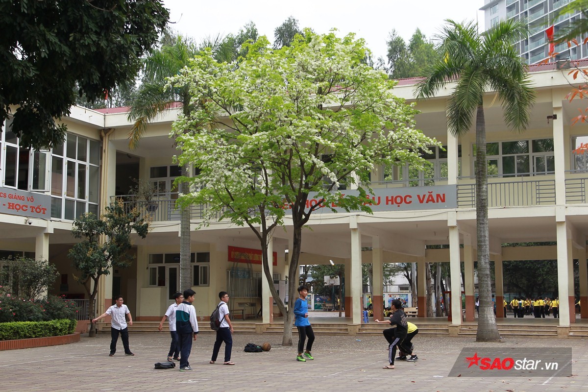 Góc sân trường cũng trở nên đẹp hơn nhờ cây hoa sưa.