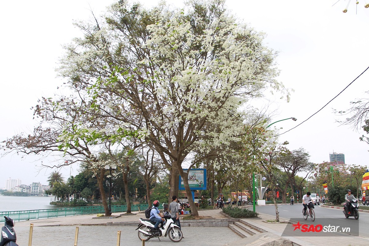 Những ngày này, người dân sống ở khu Ba Đình, Tây Hồ có lẽ sẽ quen thuộc với cảm giác mỗi sớm mai ùa ra đường, chợt thấy trong tầm mắt hay khoảng trời trên đầu mình băng qua được phủ kín bởi những cây hoa muôn sắc muôn màu. Từ đường Phan Đình Phùng, Quán Sứ, Thanh Niên cho đến những cung đường 5m ven hồ hay ngược lên đê Yên Phụ… đâu đâu cũng nhìn thấy những chùm hoa sưa bung nở trắng xóa. Hoa nở dọc ven đường, phủ lên những mái nhà biệt thự đẹp đẽ hay một góc cửa sổ cũ kỹ… chợt tạo nên những khung cảnh hết sức nên thơ. Những cung đường mạn quanh hồ Tây thường không quá đông đúc và mỗi khi đi qua đây, hẳn người dân sẽ có những giây phút thư thả ngắm nhìn những đóa hoa mùa xuân chớm nở.
