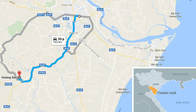Xã Hoàng Sơn - nơi xảy ra vụ việc cách TP Thanh Hóa 18 km. Ảnh: Google Maps.