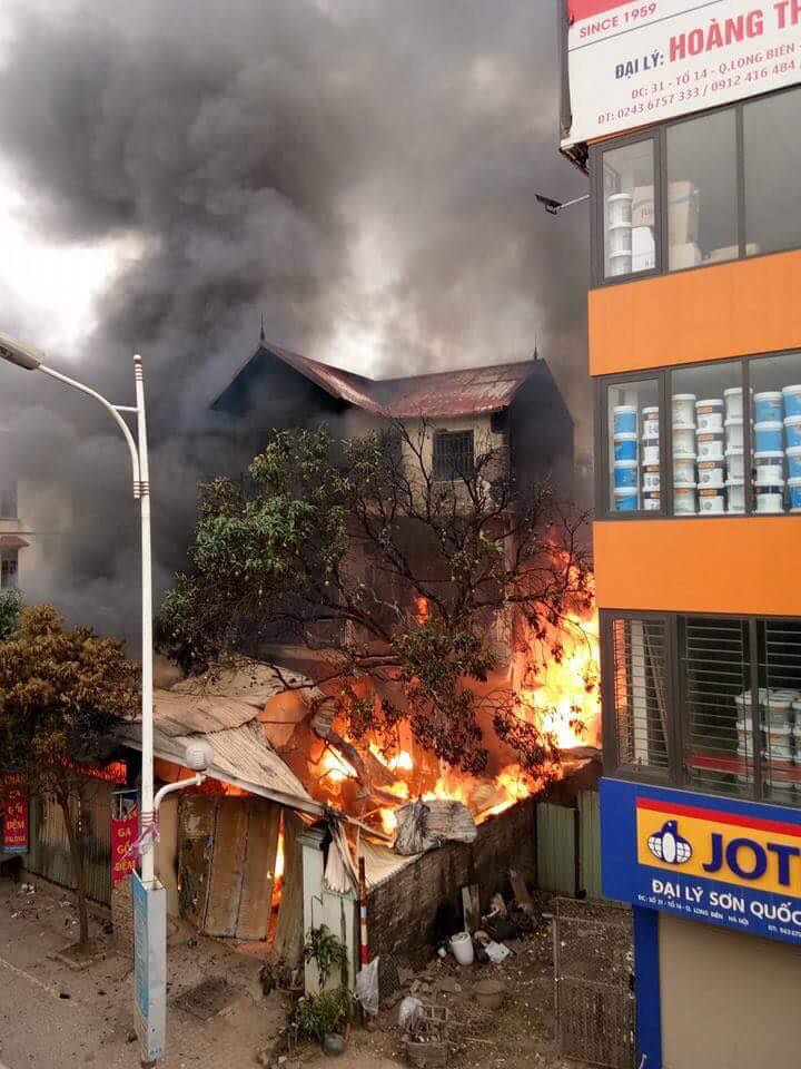 Trước đó, khoảng 6h30 ngày 10/5, đám cháy bốc lên từ một số cửa hàng và ngôi nhà biệt thự ba tầng tại chân cầu Vĩnh Tuy, phía quận Long Biên. Người dân nghe thấy nhiều tiếng nổ lớn bên trong khu vực cháy.