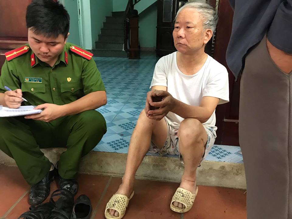 Sau đó ông Mạnh được người thân đưa ra ngoài theo dõi lực lượng chức năng khám nghiệm hiện trường.