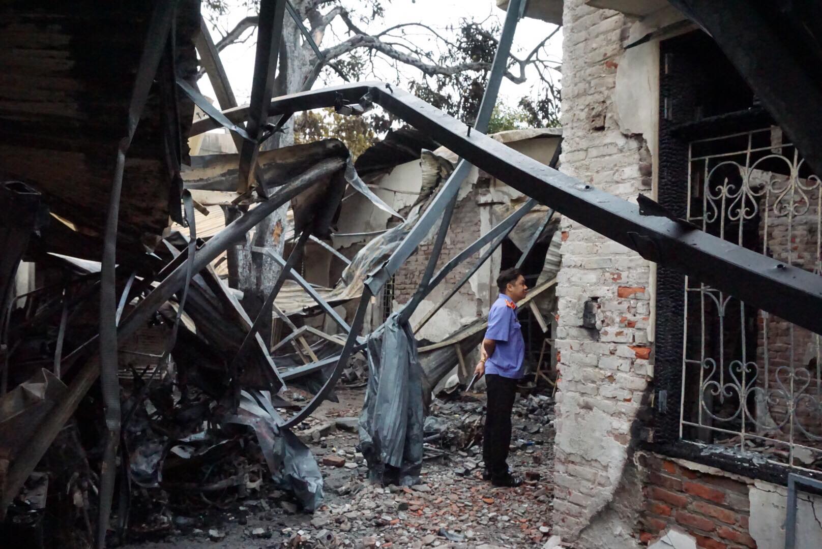 Khu nhà cháy có kết cấu khung sắt, lợp mái tôn rộng vài trăm mét. Sau vụ cháy, hàng hóa trong cửa hàng chăn ga gối đệm bị thiêu rụi, nhiều bình gas cháy sém. Ngôi nhà ba tầng cạnh đó cũng bị thiệt hại.