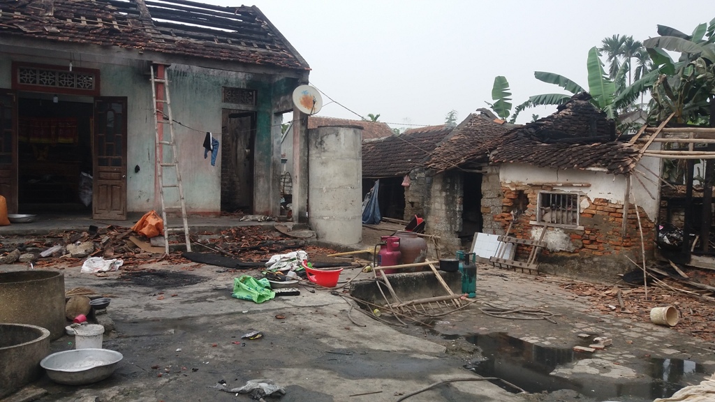 Do lửa cháy quá nhanh, ngôi nhà đã cũ nên dễ bén lửa vì vậy đã thiêu rụi hoàn toàn gian bếp và một phần gian nhà chính. Có 2 chiếc xe máy bị ngọn lửa thiêu cháy và nhiều tài sản có giá trị khác.
