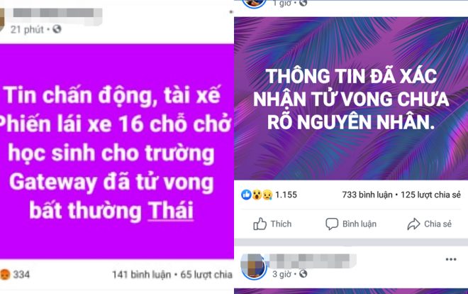 Chiều 19/8, trên mạng xã hội xuất hiện nhiều thông tin đồn đoán ông Đỗ Quý Phiến (SN 1966, trú tại phường Dịch Vọng, quận Cầu Giấy) lái xe đưa đón học sinh của trường tiểu học quốc tế Gateway đã tử vong. Thông tin này nhanh chóng lan truyền trên mạng xã hội.