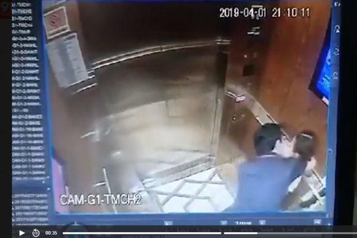 Hình ảnh ghi lại cảnh Nguyễn Hữu Linh có hành động sàm sỡ bé gái trong thang máy. Ảnh cắt từ clip.