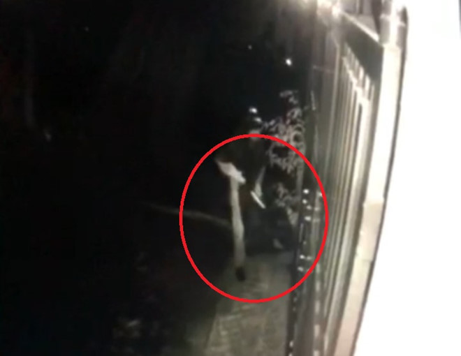 Camera gần nhà bà B. quay lại đối tượng mặc áo mưa, bịt khẩu trang nổ súng vào nhà. (Ảnh: Thanh Niên).