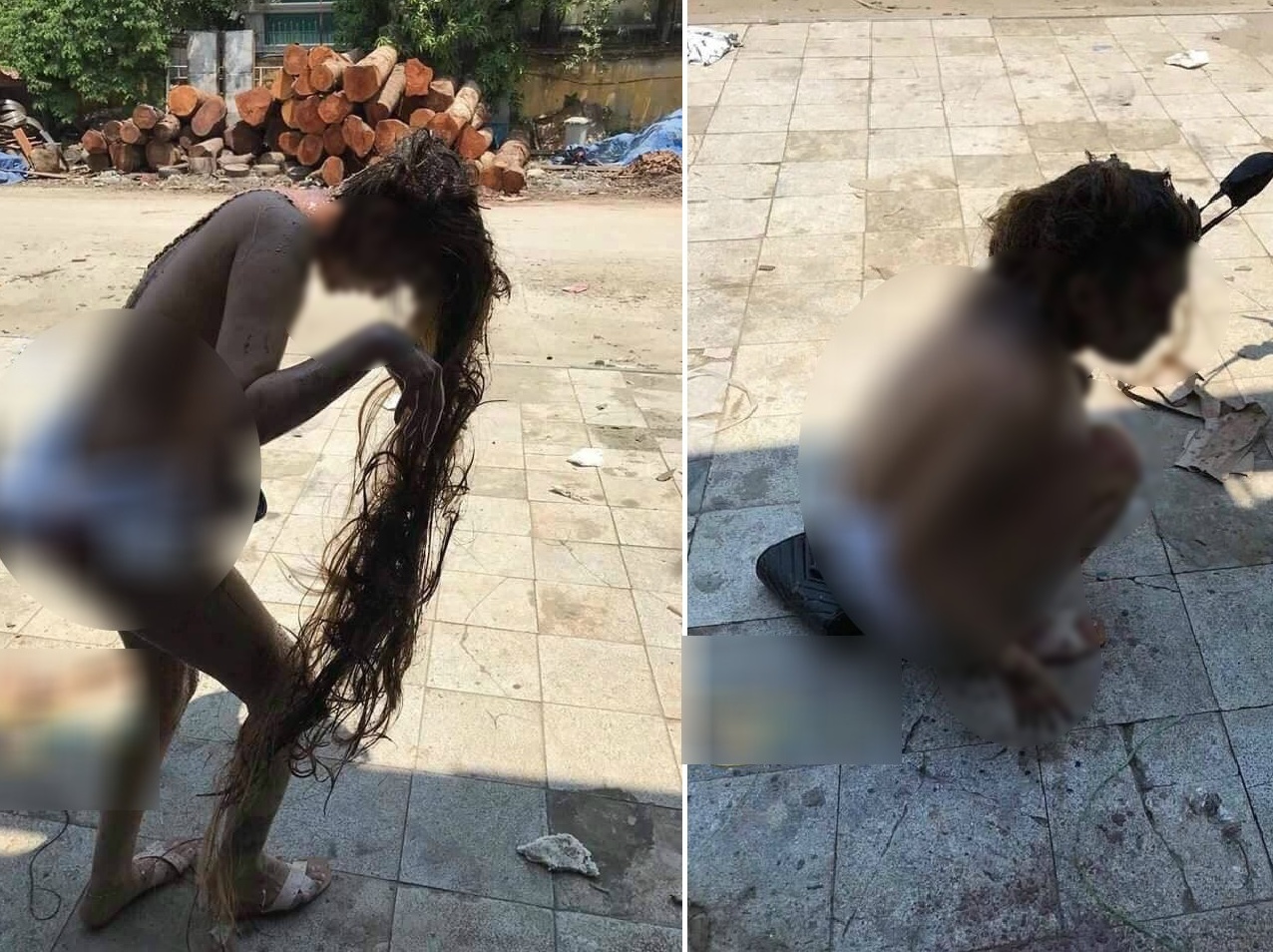 Hình ảnh cô gái bị lột đồ đăng tải lên mạng xã hội.