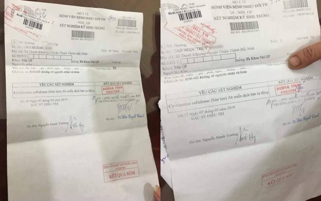 Phiếu xét nghiệm nhiều học sinh dương tính với sán lợn.