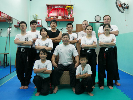 Võ sư Nam Nguyên Khánh (ngồi giữa) và các học trò