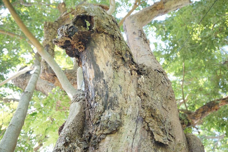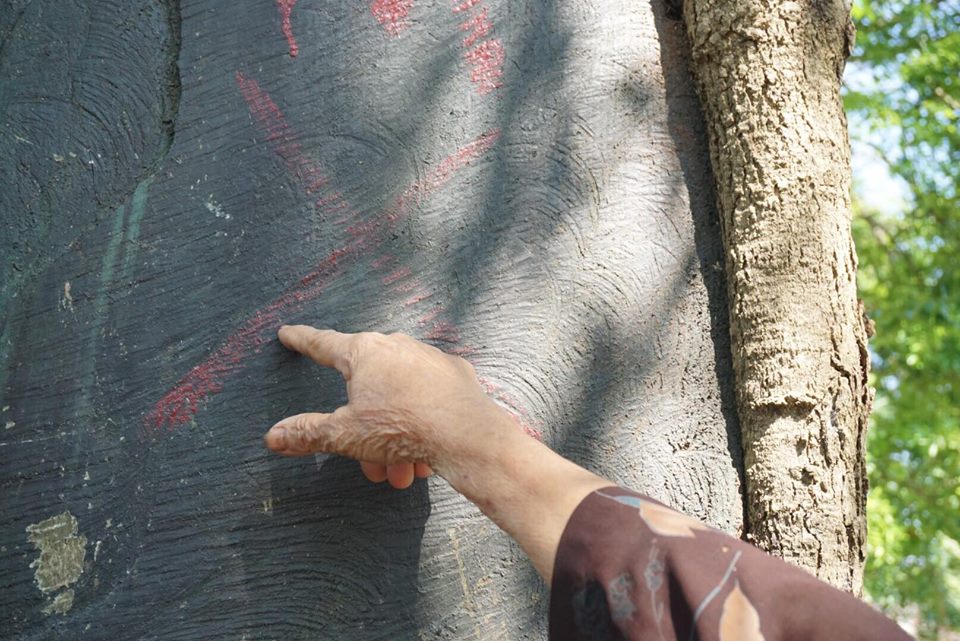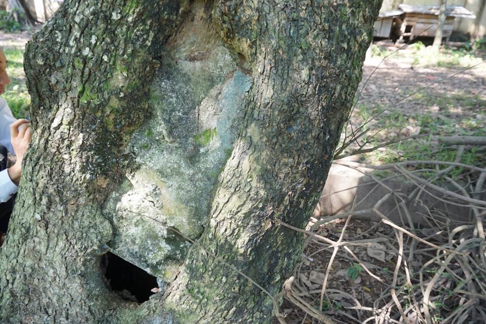 Theo người dân trước đây phần gốc cây bị mối mọt người dân phải dùng gạch bịt lỗ xây lại.