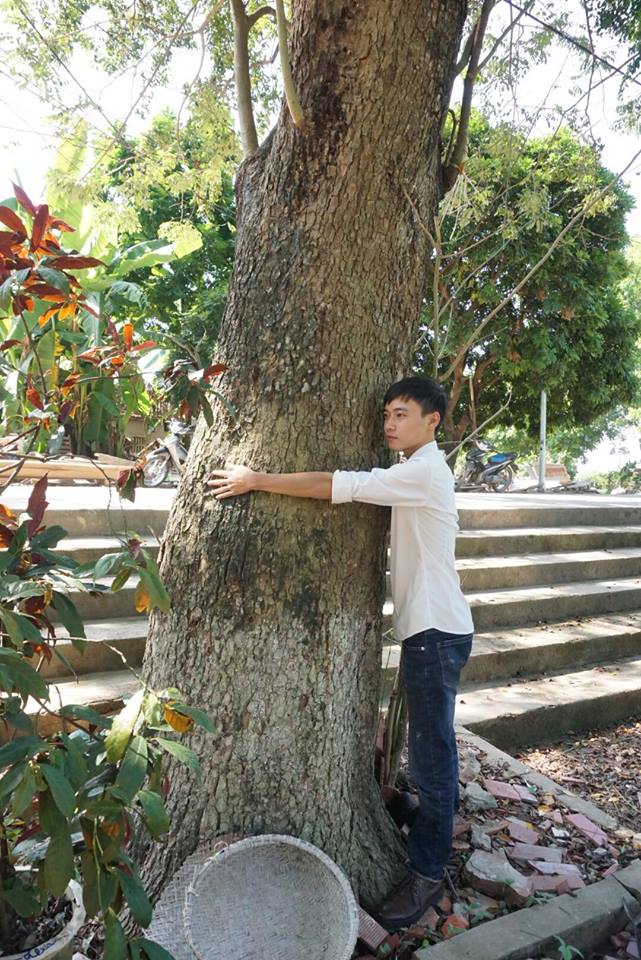 Trong số 3 cây sưa thì cây này to nhất, bằng hai người ôm.