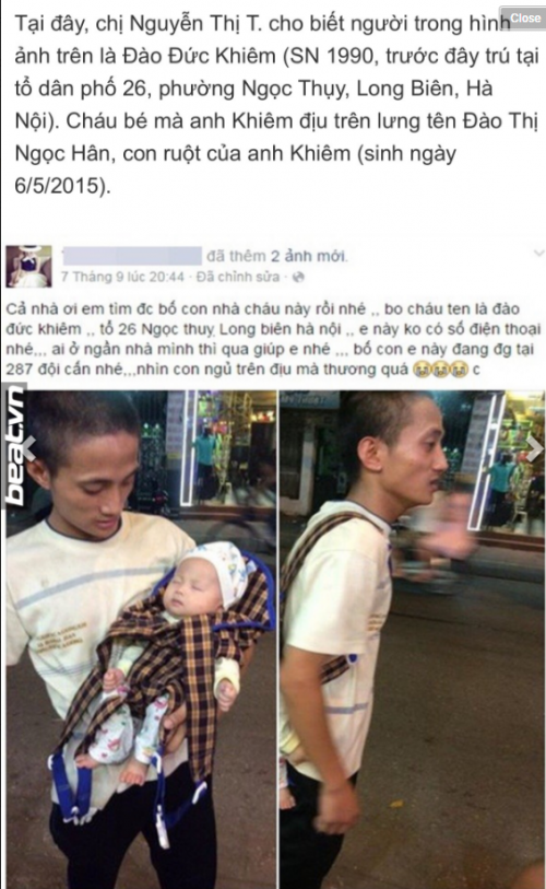 “Mấy hôm nay, thông tin về người này ôm con khiến mọi người thương hại cho tiền lại xuất hiện. Nhiều anh em cho biết vẫn hay thấy Khiêm đèo vợ con và hai vợ chồng vẫn ở với nhau chứ không phải vợ bỏ con đi theo trai”, Phó trưởng công an phường Ngọc Thụy cho biết.