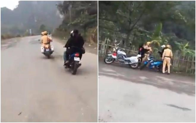 Trước đó, khoảng 10 giờ ngày 22/2, trong khi thực hiện nhiệm vụ tuần tra kiểm soát tại tuyến đường Tràng An, Trung úy Nguyễn Quốc Đạt và Thiếu úy Lê Ngọc Tiến phát hiện một nhóm thanh niên nam, nữ điều khiển xe mô tô không đội mũ bảo hiểm, dàn hàng ngang, lạng lách, đánh võng.