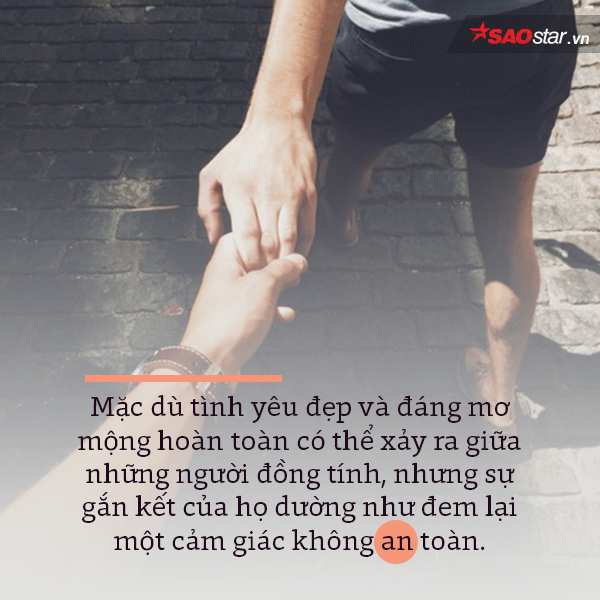 Mặc dù tình yêu đẹp và đáng mơ mộng hoàn toàn có thể xảy ra giữa những người đồng tính, nhưng sự gắn kết của họ dường như đem lại một cảm giác không an toàn. Điều này là có thật. Người đồng tính ít khi cảm thấy an toàn trong một mối quan hệ. Họ rất thường xuyên bị cảm giác nghi ngờ, sợ phản bội, sợ bị bỏ rơi… xâm chiếm. Lý do là bởi bản thân tình yêu đồng giới còn gặp nhiều rào cản xã hội, và những cặp đôi, dù có muốn cũng ít khi dám thể hiện tình cảm công khai. Những bạn chưa “come-out” với gia đình thì thậm chí còn phải tìm cách giấu diếm. Họ đi cạnh nhau nhưng nhiều lúc phải diễn vai hai người bạn, và tất cả những điều này khiến cho cảm giác ức chế, thiếu tin tưởng tăng lên. Tình yêu đồng giới giống như một cái cây trong bóng tối, ít được vun xới và chiếu sáng bởi ánh nắng mặt trời, và bản thân những người trong cuộc qua thời gian buộc phải học cách chấp nhận chuyện đó.