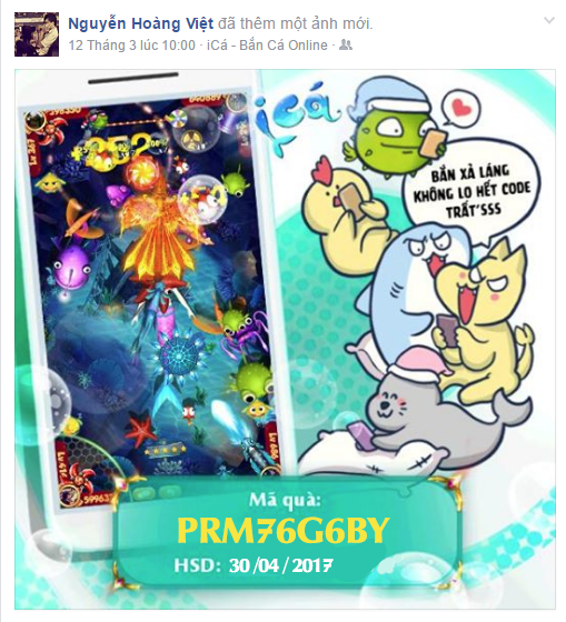 Để thu hút các bạn trẻ, iCá đã phối hợp cùng Thăng Fly Comics đưa hình ảnh rồng Pikalong ngộ nghĩnh vào game thông qua tính năng share ảnh. Cụ thể, sau khi người chơi ăn được cá boss trong game, tính năng share ảnh sẽ giúp họ chia sẻ chiến tích lên tường facebook, ảnh chiến tích sẽ được lồng thêm hình rồng Pikalong và cá Nóc theo phong cách truyện tranh vui nhộn.