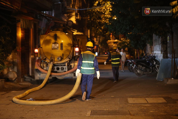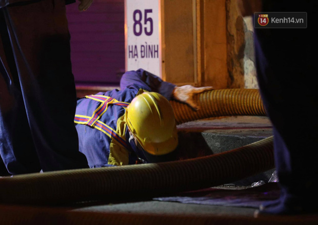 Vào khoảng 22h ngày 14/9, Công ty Thoát nước Hà Nội bắt đầu triển khai công tác hút bùn, khơi thông hệ thống cống rãnh, thoát nước xung quanh Công ty Rạng Đông. Ảnh: báo Trí Thức Trẻ