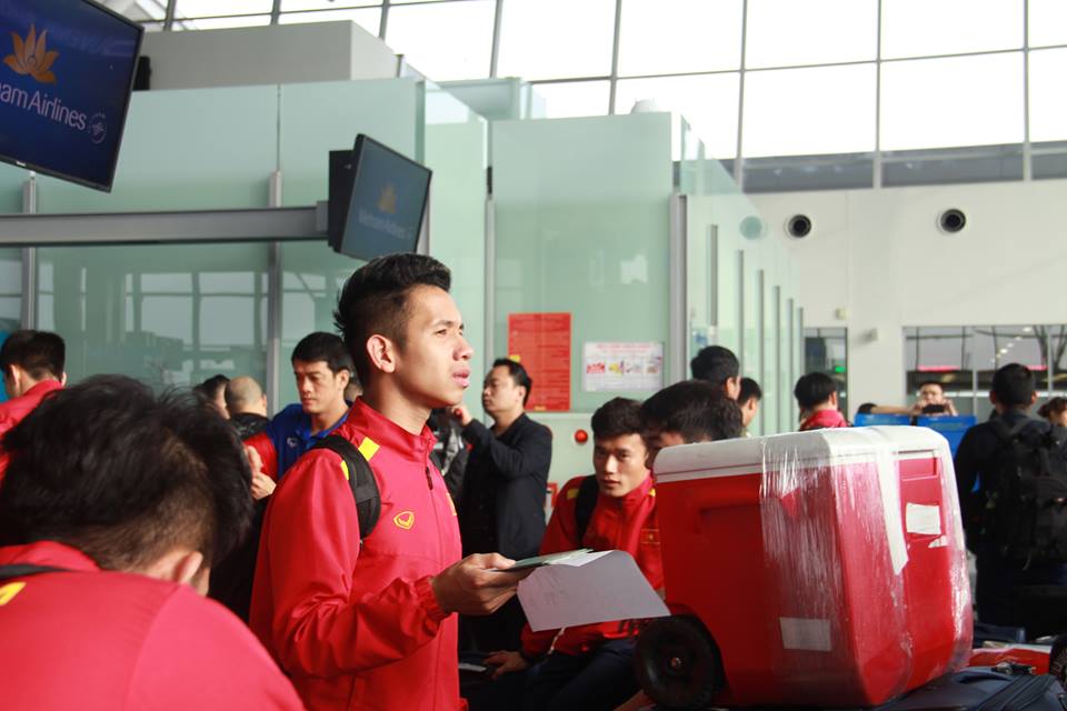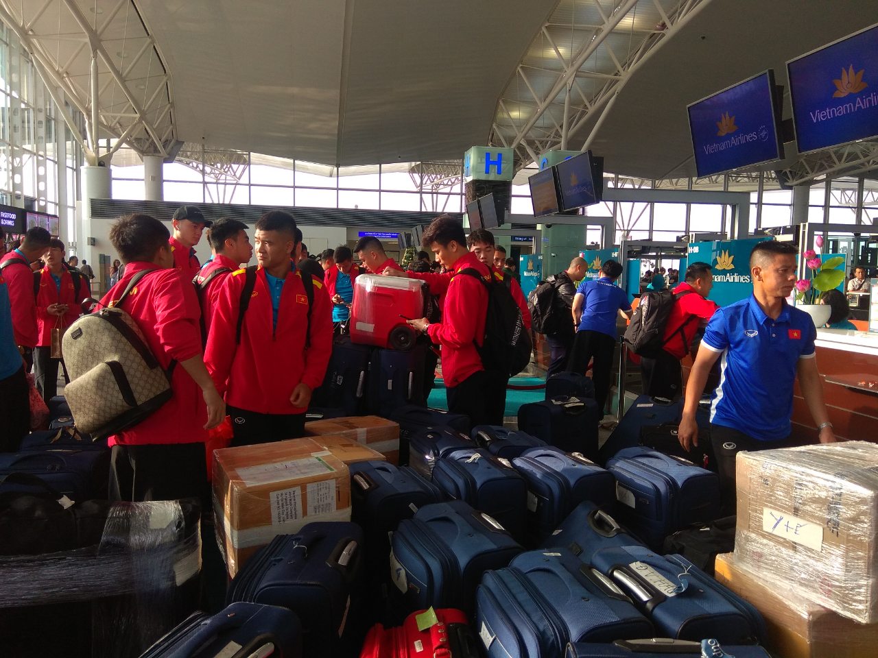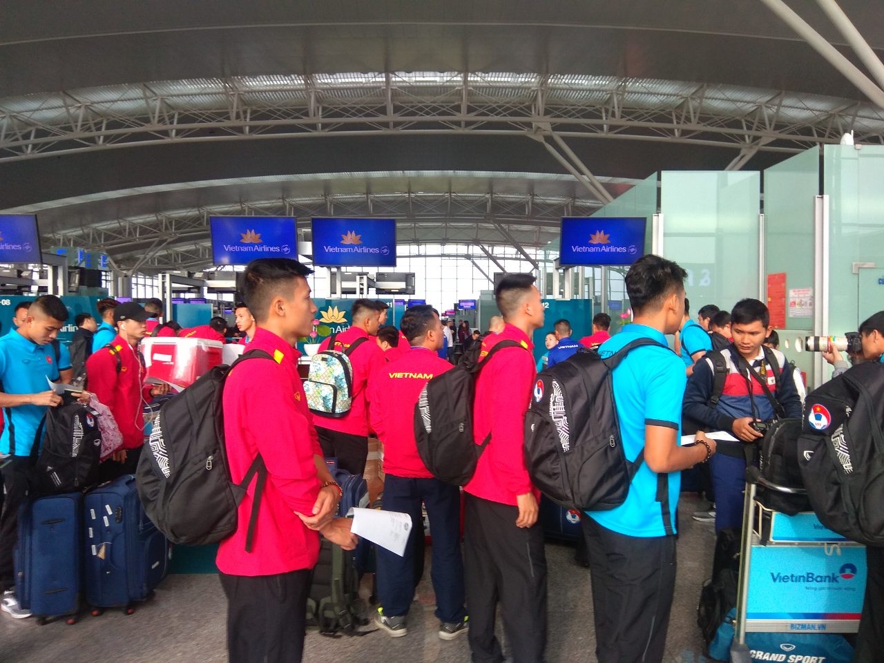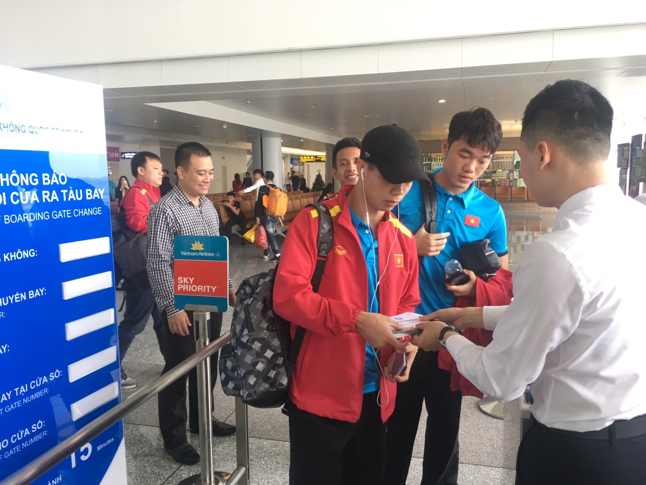 Nhằm hỗ trợ đội tuyển lên đường thuận lợi, Vietnam Airlines đã dành riêng quầy tại khu vực phục vụ khách hạng Thương gia để Ban huấn luyện và các cầu thủ hoàn thành thủ tục hàng không tại sân bay.