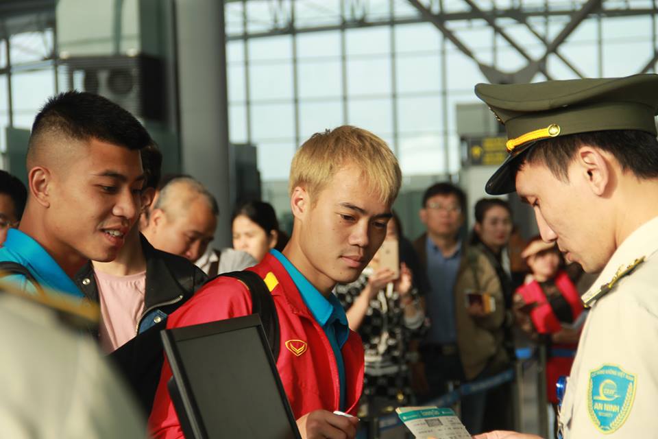 Các cầu thủ làm thủ tục bay. Ảnh: Zing.