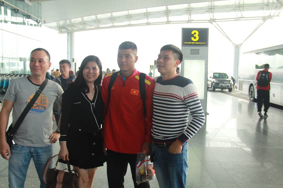 Cầu thủ Hồng Duy cũng đang tất bật chờ làm thủ tục check-in.