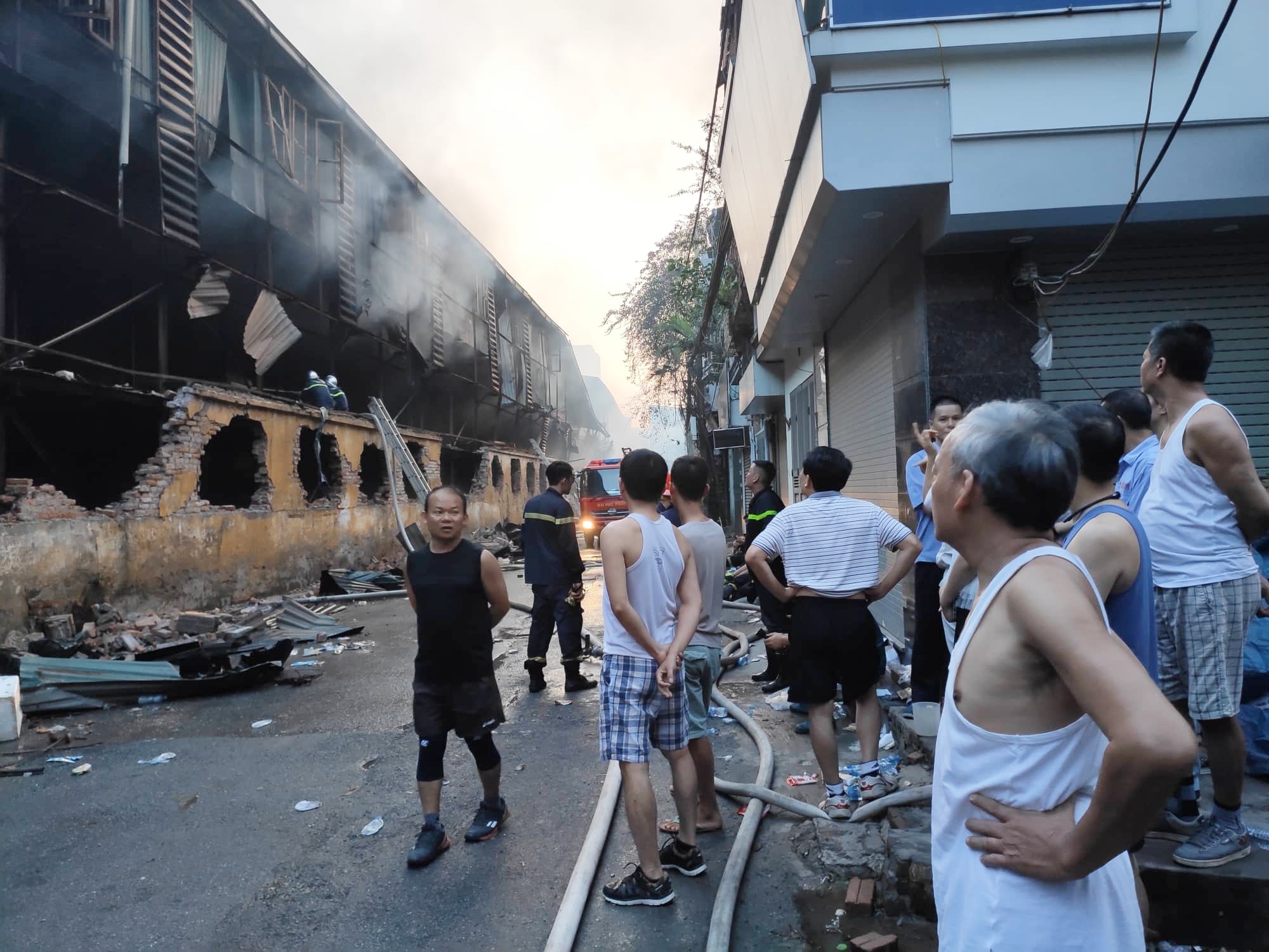 Cho tới sáng nay (29/8) khói vẫn âm ỉ bên trong bốc ra khiến lực lượng cảnh sát PCCC phải tiếp tục phun nước làm mát. Lần đầu tiên, Hà Nội huy động 50 xe chuyên dụng cùng hàng trăm cảnh sát, chiến sĩ PCCC tiếp cận hiện trường, phá bức tường gạch bao quanh nhà kho, dùng vòi rồng phun nước cứu hoả.