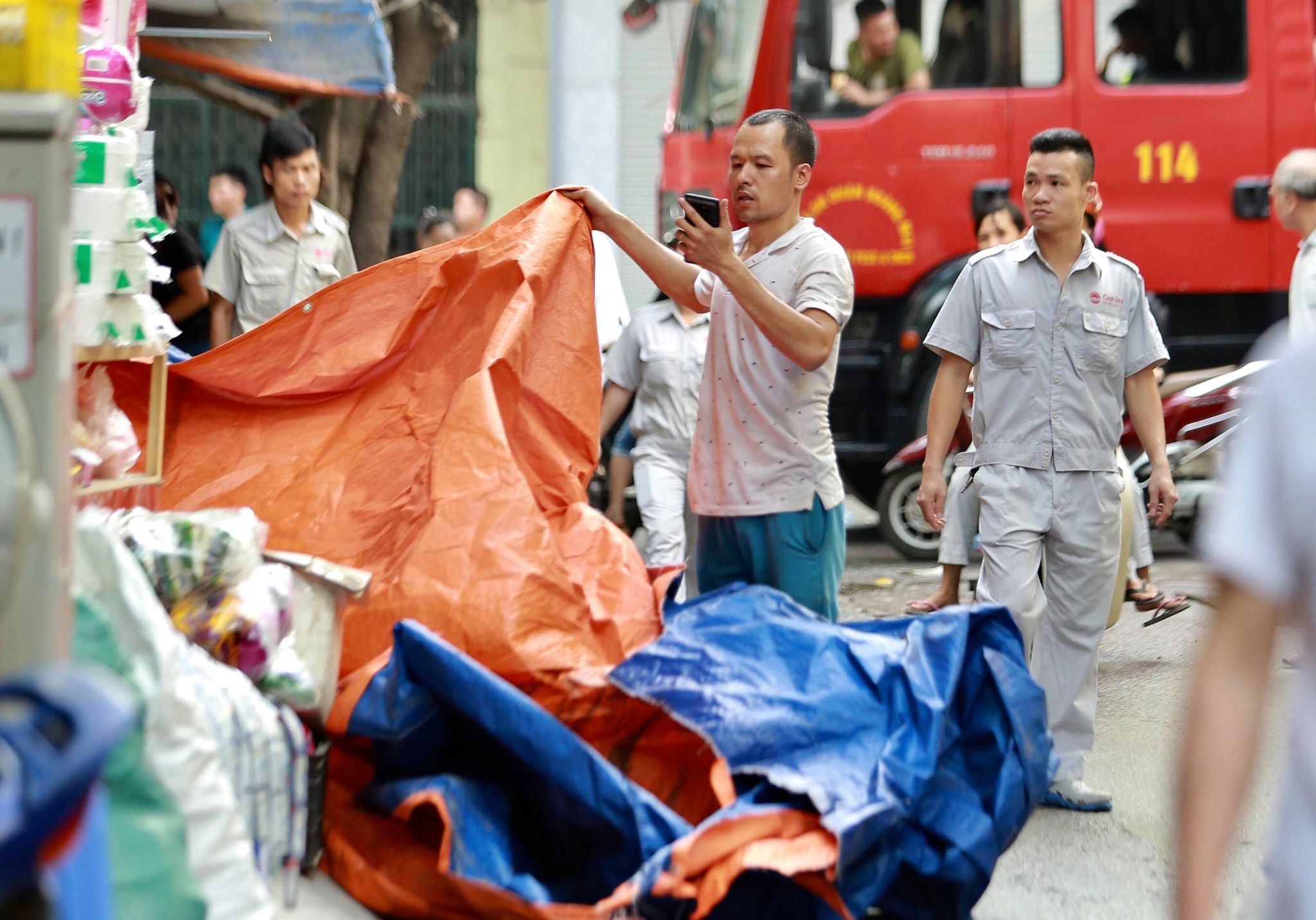 Khi ngọn lửa bén dần sang nhà dân trong khu vực, cơ quan chức năng đã kêu gọi mọi người cùng chung tay giúp người dân sơ tán đồ đạc. Mọi hoạt động được tiến hành gấp rút, nhanh gọn, mặc dù khói độc và sức nóng từ nhà kho vẫn đang toả ra hầm hập.