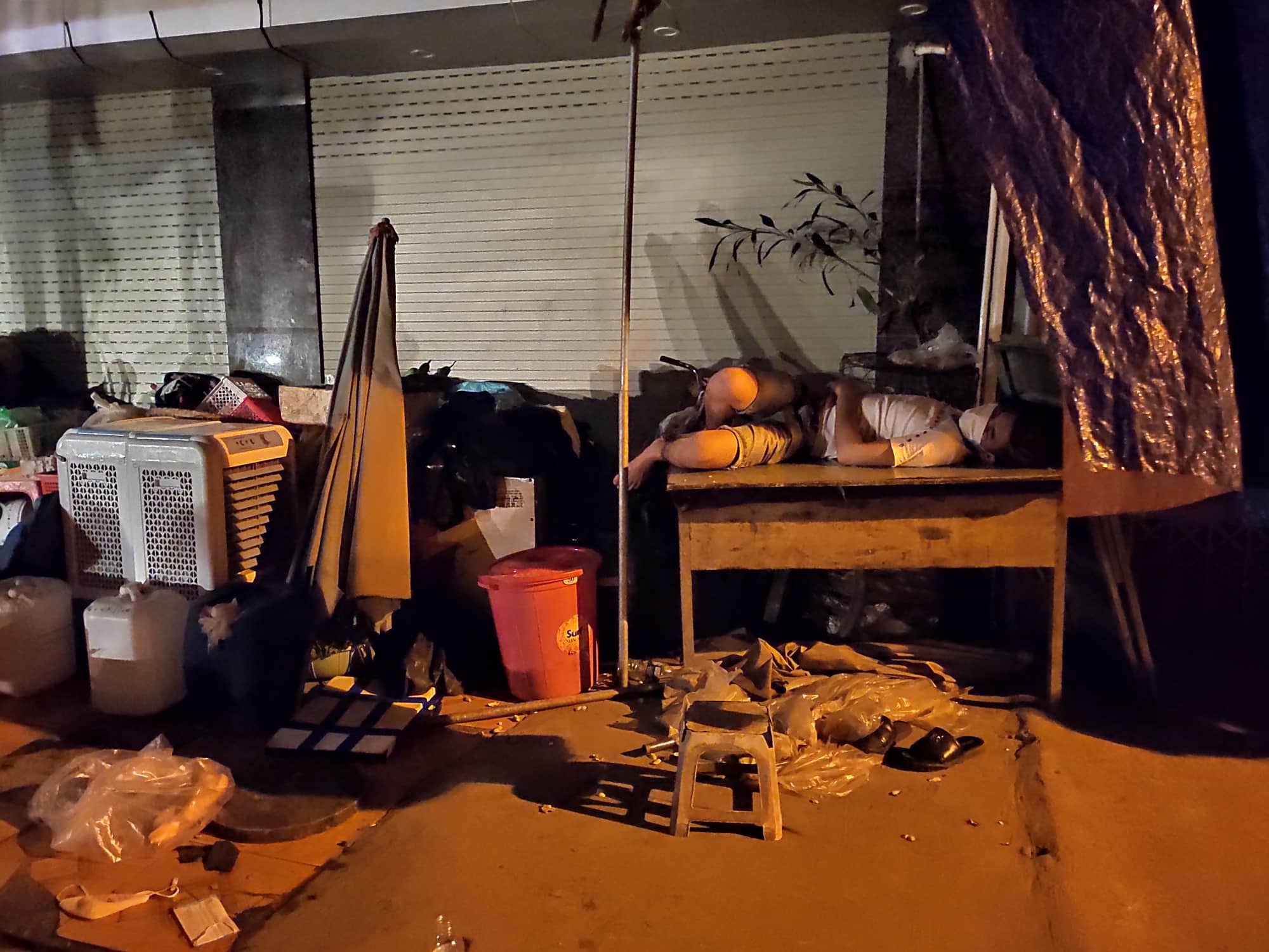 Nhiều người dân trắng đêm trông nom đồ đạc.
