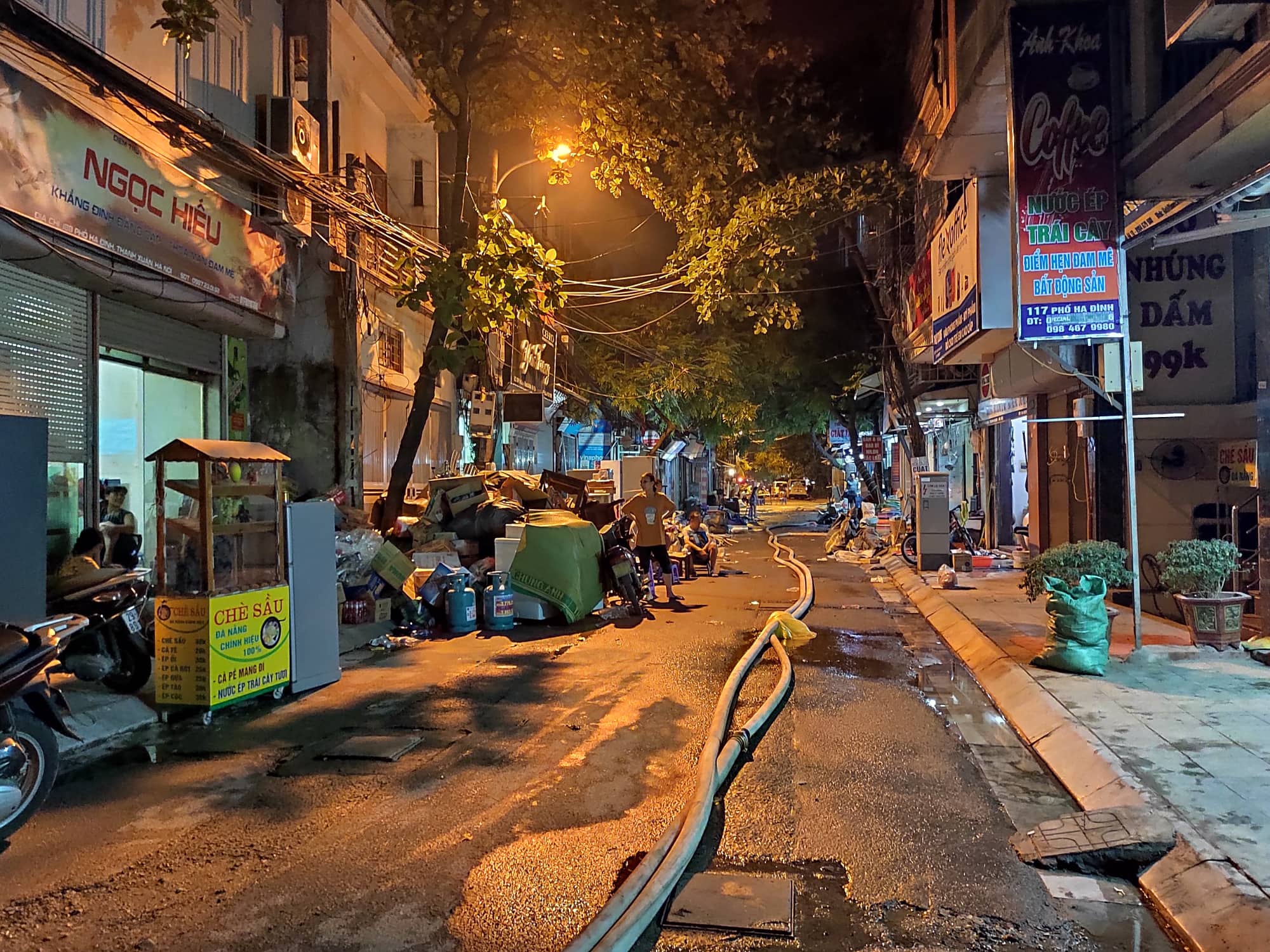 Vì mải lo thu dọn đồ đạc, gần 2h sáng ông Vũ Tường Thịnh mới tranh thủ ăn bát mì. “Coi như là hết đêm, may mắn lửa không lan sang hết khu nhà dân bên này không thì thiệt hại không biết bao nhiêu”, bác Thịnh chia sẻ.
