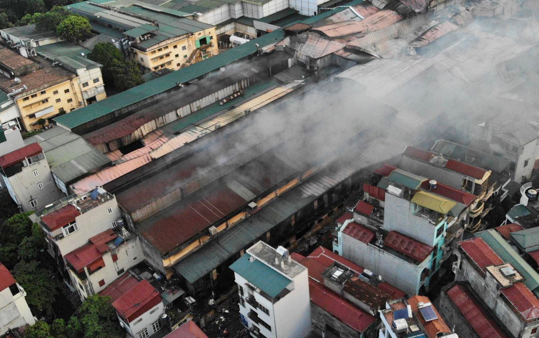 Cận cảnh Công ty Bóng đèn phích nước Rạng Đông nhìn từ trên cao tan hoang sau cháy lớn.