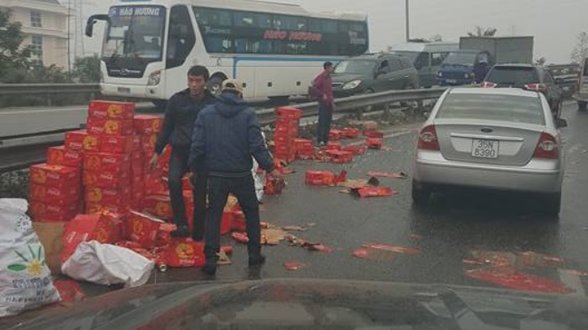 Chiều 2/12, trên mạng xã hội xôn xao thông tin một xe tải chở nước giải khát Coca Cola bị rơi một số thùng hàng và nhiều tài xế taxi lao vào “hôi của”. Theo thông tin đăng tải, sự việc xảy ra vào khoảng 13h tại đoạn đường Pháp Vân - Cầu Giẽ đi lên đường Vành đai 3 trên cao, thuộc địa phận quận Hoàng Mai, TP Hà Nội.