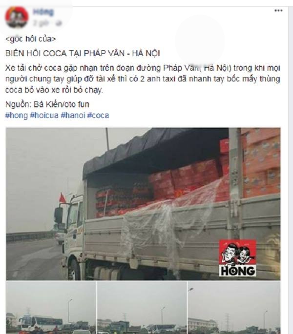 Thông tin đăng tải về việc xe tải chở Coca Cola bị “hôi của” sau khi gặp nạn gây xôn xao.