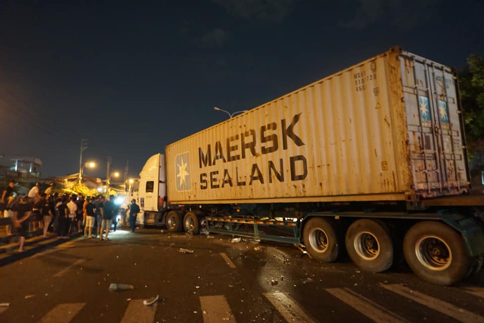 Tại hiện trường, xe container chắn ngang làn đường ngược lại, cả 2 phương tiện bị hư hỏng. Vụ tai nạn còn làm đèn chiếu sáng dọc tuyến đường Trường Chinh tắt hơn 2 giờ mới khắc phục được.