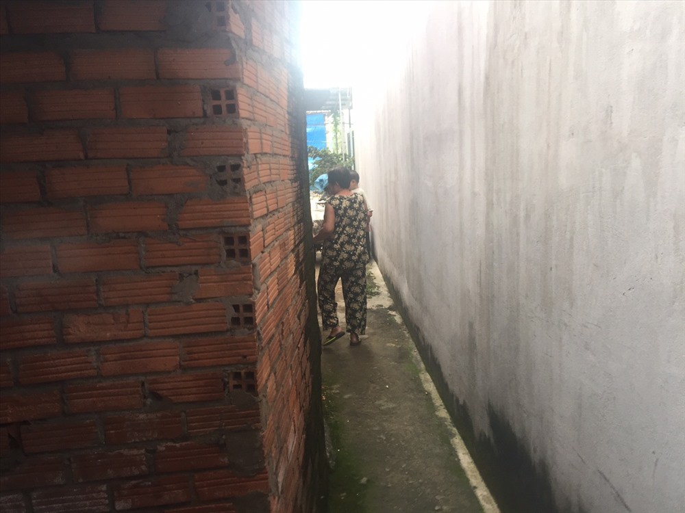 Vì căn nhà gia đình Hiếu nằm khuất sau các hộ dân khác, nên lối đi vào chỉ nhỏ bé đủ 1 người đi.