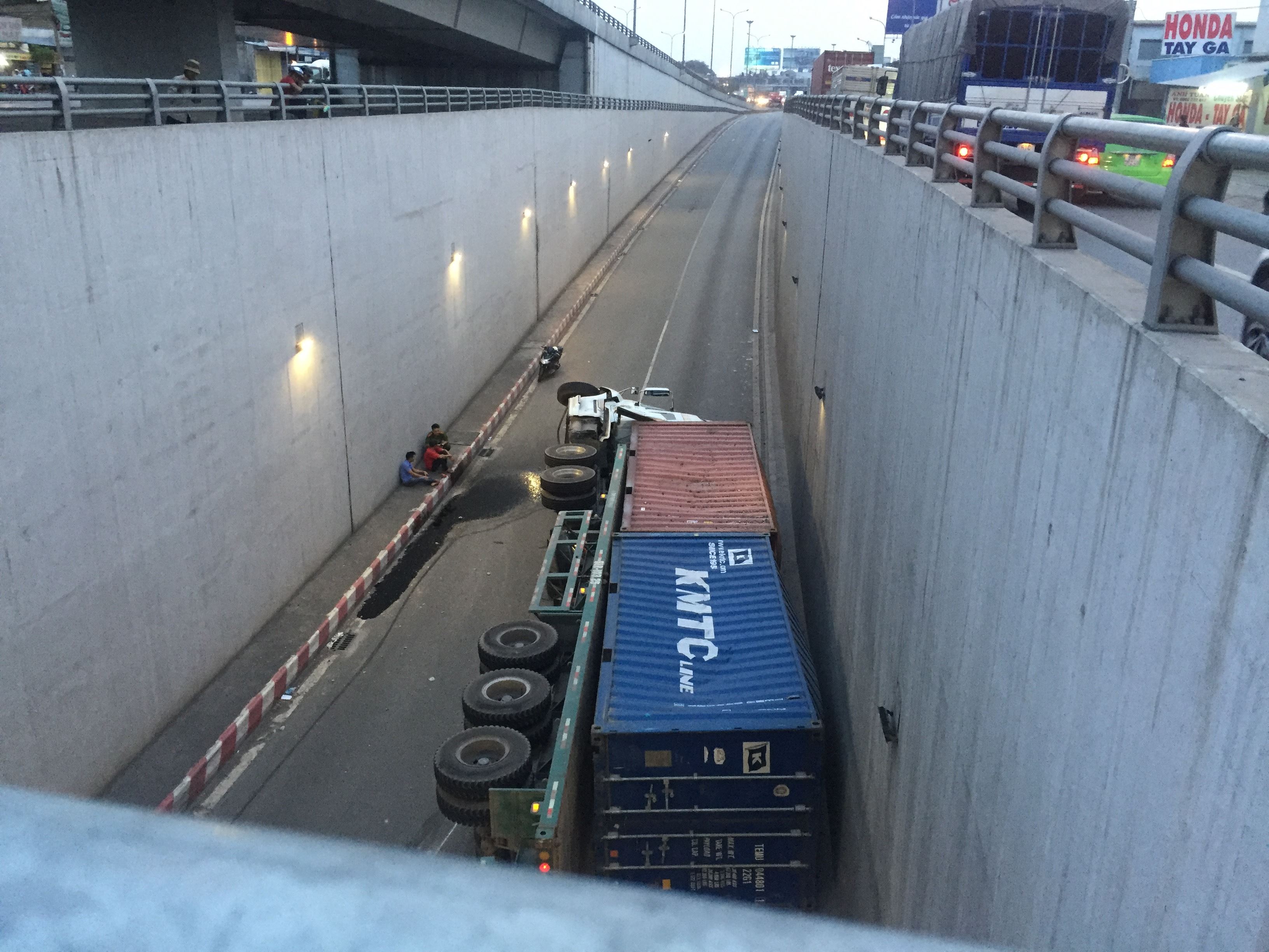 Theo người dân cho biết, vị trí này đã từng có chiếc xe container bị lật nhào. Ngoài ra, còn có xe container chở cuộn sắt qua hầm cũng làm rơi cuộn sắt xuống đường, rất nguy hiểm tính mạng đến người tham gia giao thông.