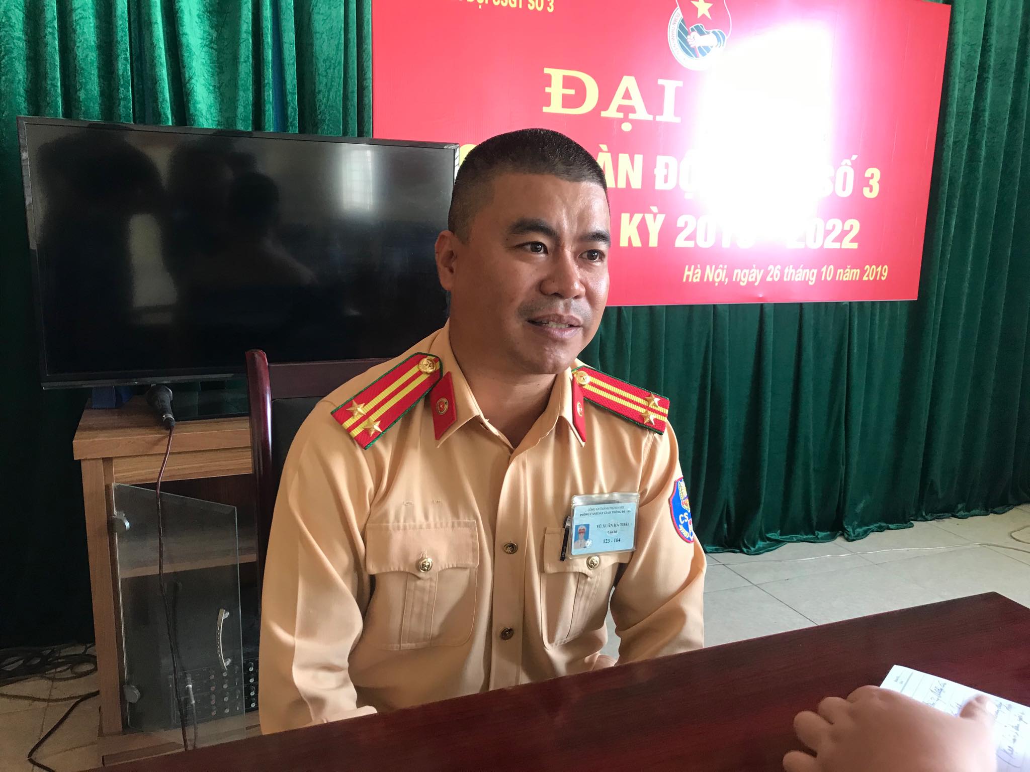 Theo đó vào thời gian trên Tổ công tác thuộc Đội CSGT số 3 gồm Trung tá Vũ Xuân Hà Thái là Tổ trường, Trung uý Nguyễn Quốc Huy - Tổ viên; Thượng uý Đoàn Hữu Tuấn (PK20E) - Tổ viên, Thiếu uý Nguyễn Kha Huy (PK20E) - Tổ viên làm nhiệm vụ TTKS trên tuyến đường Láng, khi đến ngã tư Láng - Láng Hạ, tổ công tác phát hiện trên cầu Hoà Mục (đoạn gần ngã tư Lê Văn Lương - Nguyễn Ngọc Vũ, thuộc địa bàn Đội CSGT số 7) có xe ô tô đâm vào 3 xe máy và 01 xe đạp.