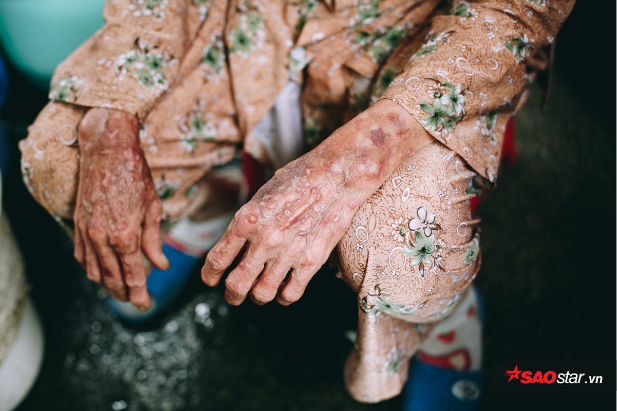 Đã hơn 20 năm nhưng vết sẹo vẫn lộ rõ trên đôi tay bà Tám.