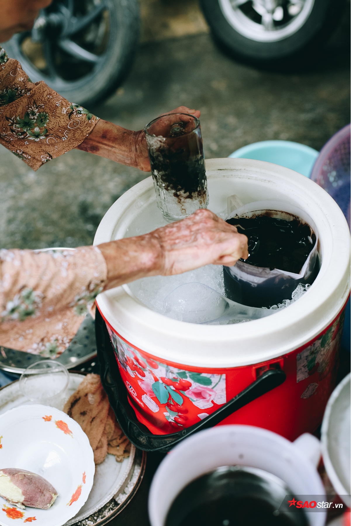 Tầm giờ trưa nắng nóng, khách cũng vì thế mà đông hơn, bà Tám thoăn thoắt cho đá bào vào ly rưới ca cao lên trên và tiếp tục câu chuyện đời mình: “Hai vợ chồng miệt mài làm lụng nuôi con thì chẳng may chồng Tám đi đào khoai mì thì trúng mìn và bị thương ở mắt. Ban đầu chỉ là nhìn mờ mờ thôi, về sau là mù hẳn. Lúc đó cũng đâu dư dả gì, cũng may có chị chồng thương tình đứng ra lo tiền viện phí thuốc thang”.
