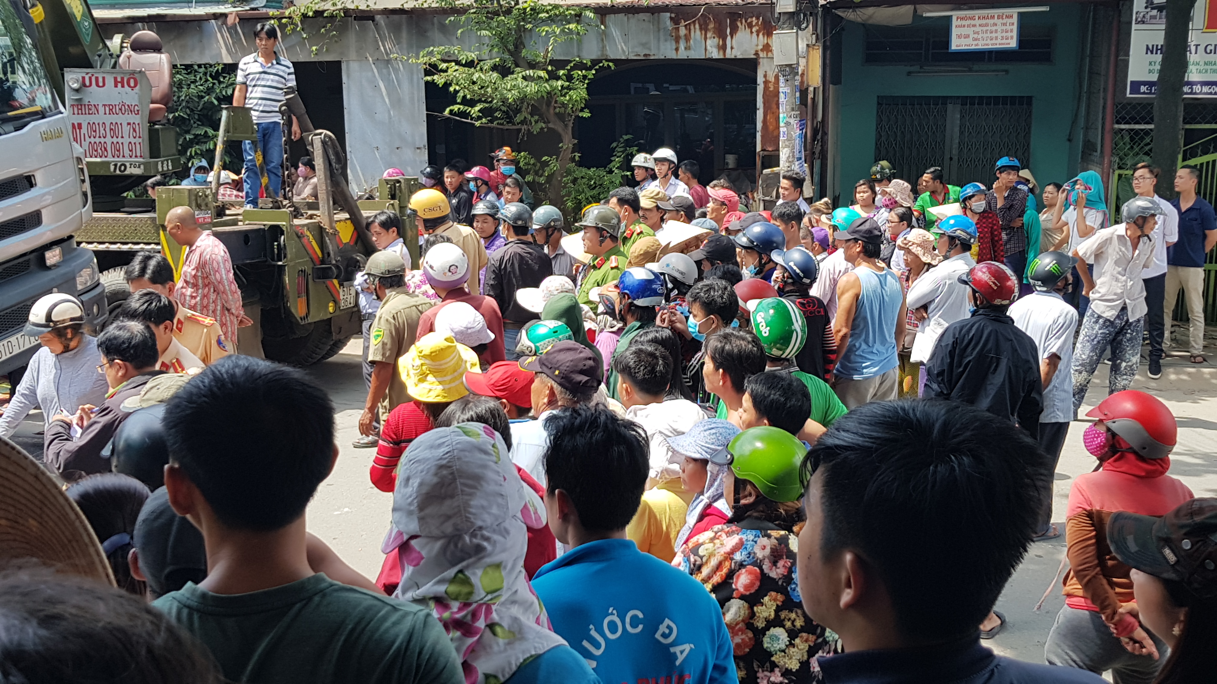 Nhận tin báo, lực lượng chức năng quận 12 đã có mặt điều tra, xử lý vụ tai nạn. Xe cẩu cũng được điều động để nâng chiếc xe tải, đưa thi thể nạn nhân ra ngoài.